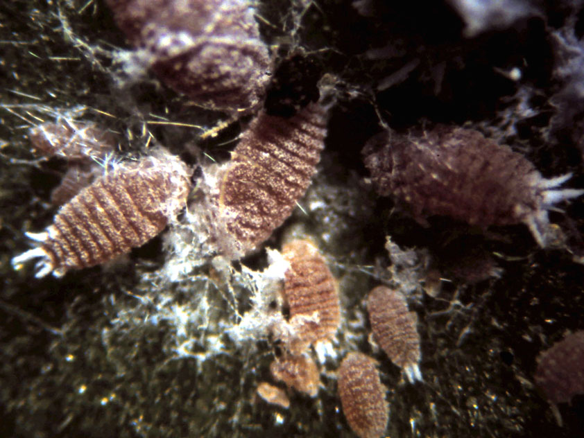 Hieruit komen minuscule jongen die rondkruipen en zich verspreiden. Ze vestigen zich op een jong groeipunt en beginnen met het zuigen van de plantensappen.